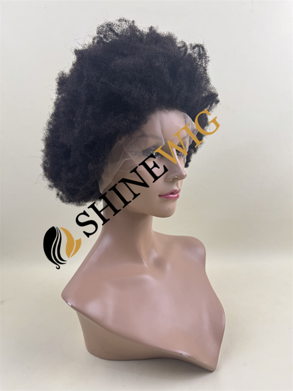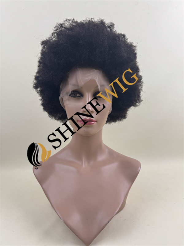 12 inch natural black kinky afro Chinese remy human hair FULL LACE WIG from shinewig
