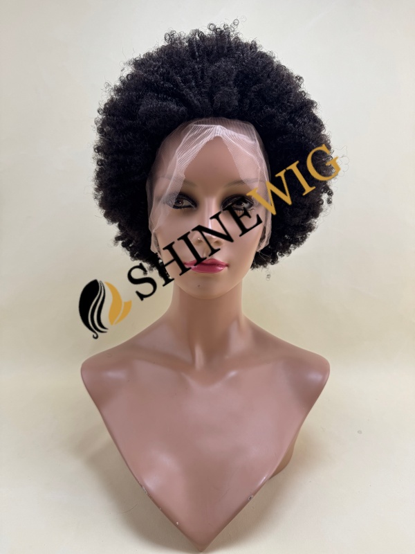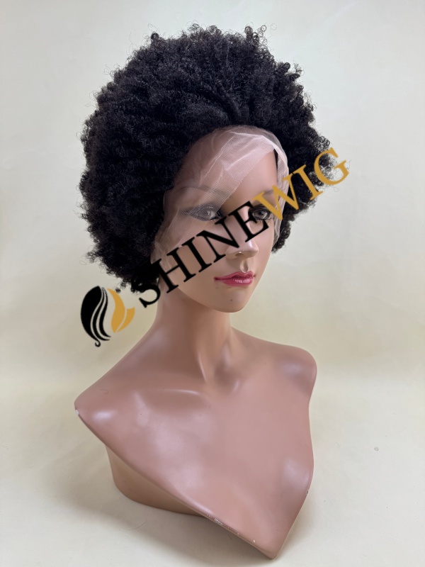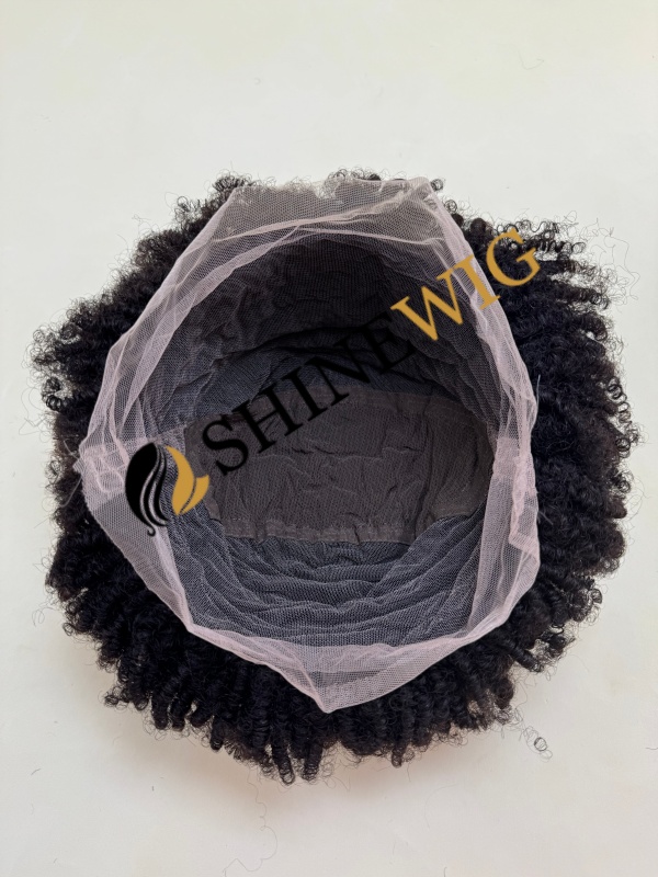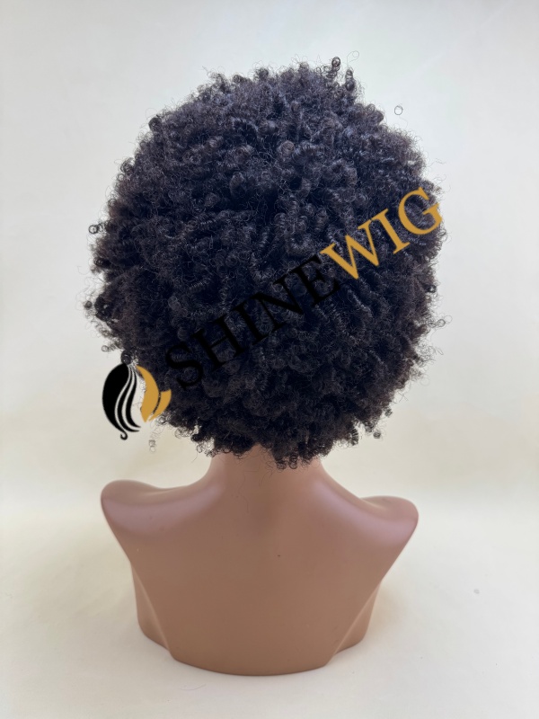 12 inch natural color 1B afro curly remy human hair full lace wig