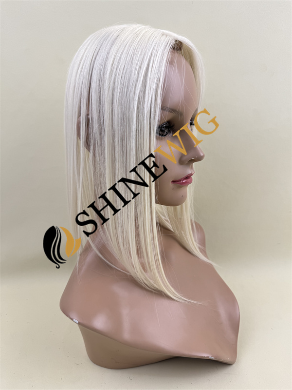 14inch PLATINUM BLONDE straight virgin human hair silk topper from shinewig