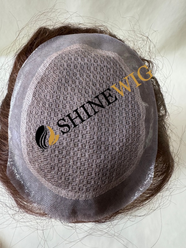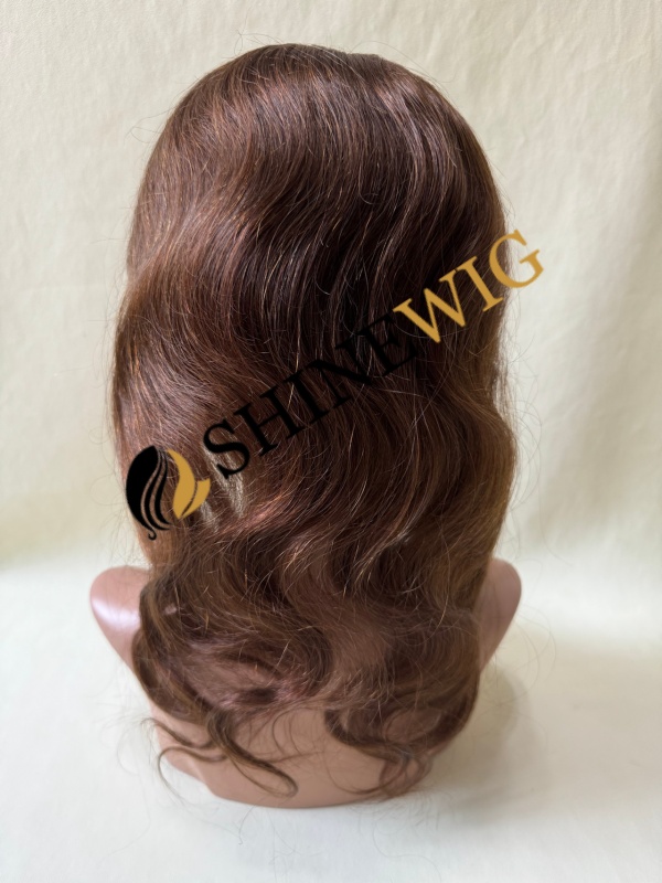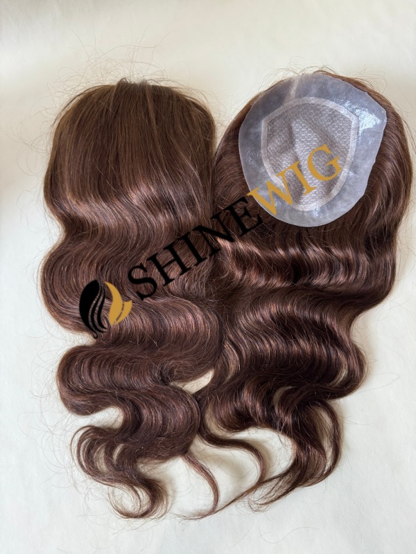 16inch Remy human hair medium brown color body wave lace and pu base hair topper from shinewig