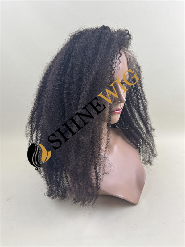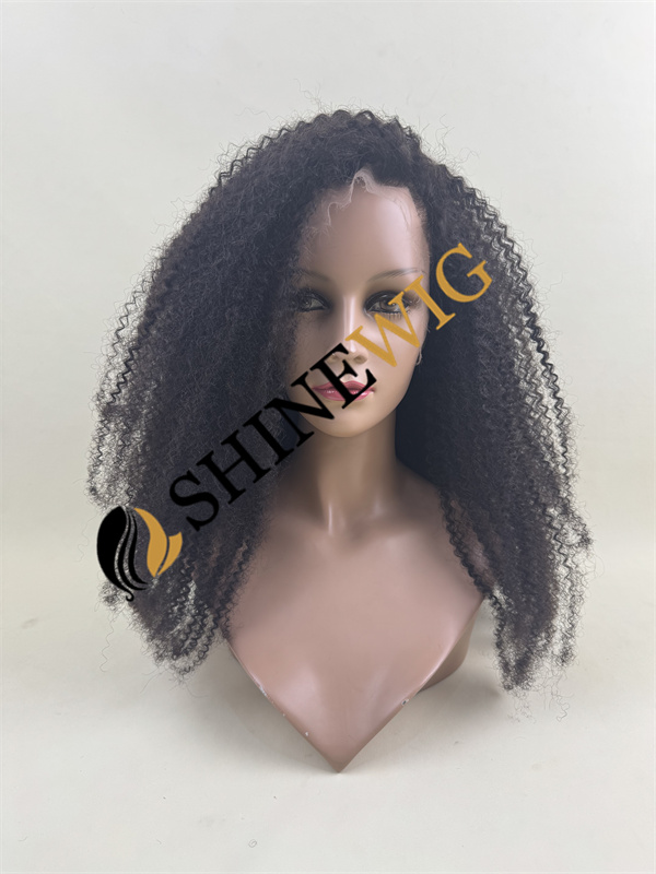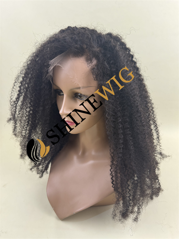 22inch remy human hair natural black color kinky curly HD full lace wig from shinewig