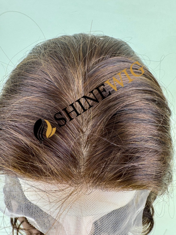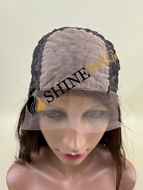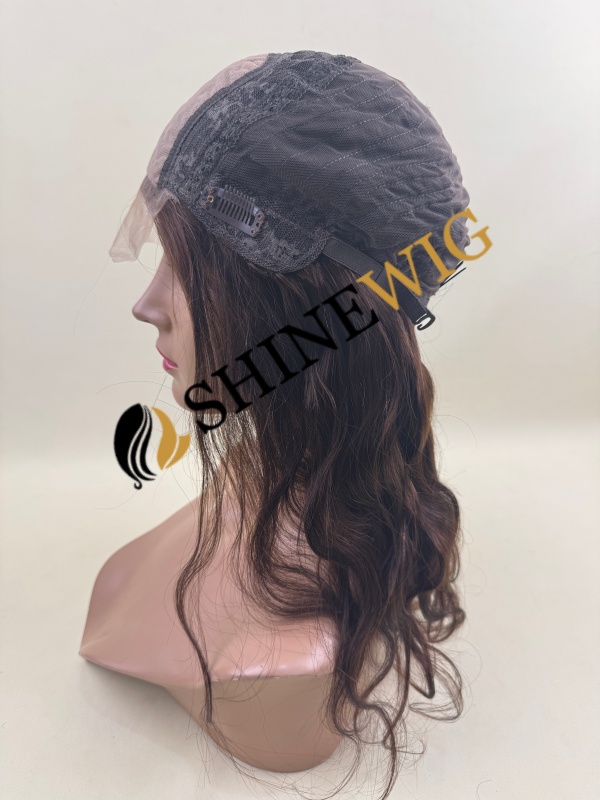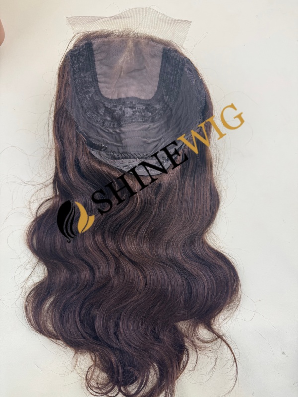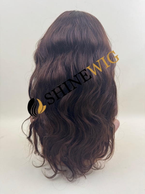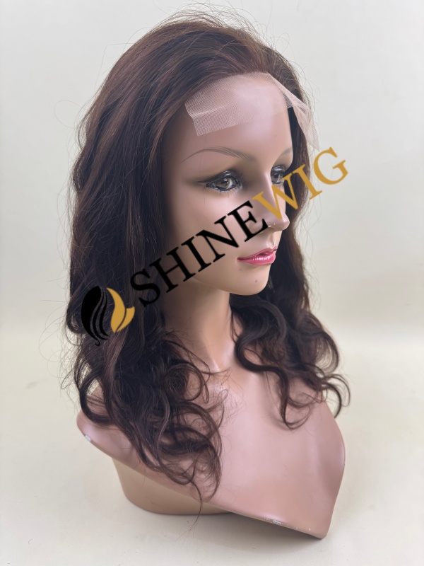 16inch brown COLOR body WAVY Chinese remy human hair natural silk top closure wig