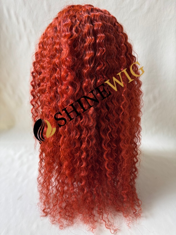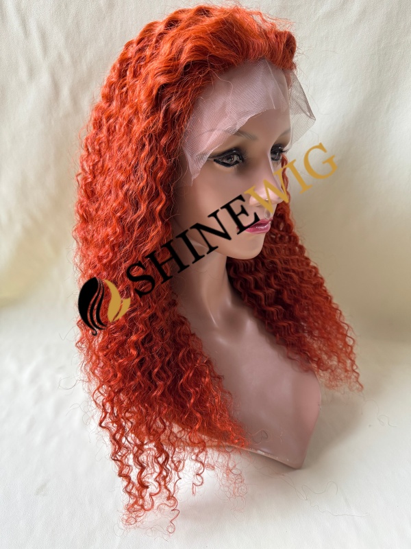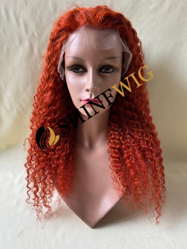 18inch Red COLOR curly remy human hair natural lace front wig from shinewig